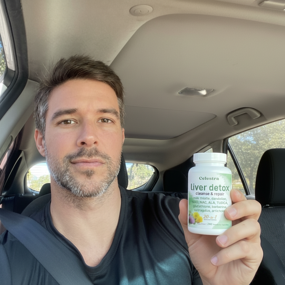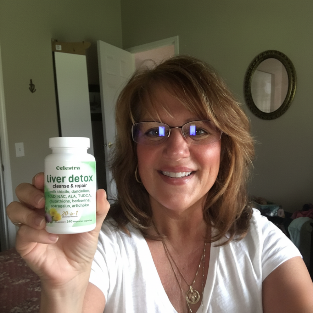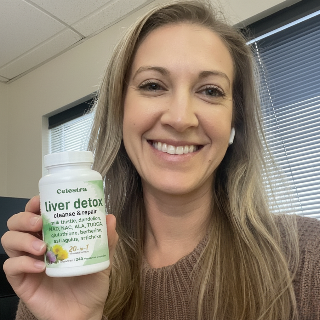 Celestra Liver Detox works by breaking down fat and toxins stored inside the liver, which are the root cause of fatty liver and sluggish metabolism. Its 20-in-1 blend — featuring milk thistle, dandelion, NAC, berberine, and artichoke — helps clear fat buildup, repair liver cells, and restore natural detox function, so your liver can finally do its job again.